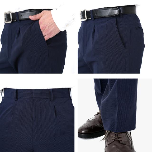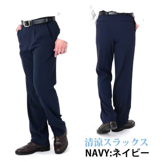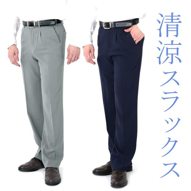 スラックス ビジネスパンツ ゴルフパンツ ワンタック 春 夏 替えズボン サラサラ涼感素材で通気性抜群 家庭洗濯 裾上げ グレー ネイビー
