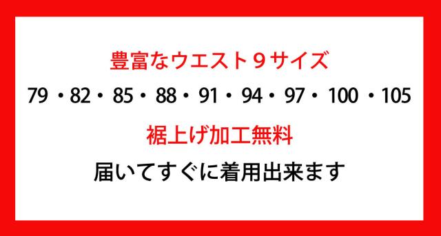 裾上げ不要の場合、ご自身での裾上げ加工が必要になります。(そのままでは着用できません)