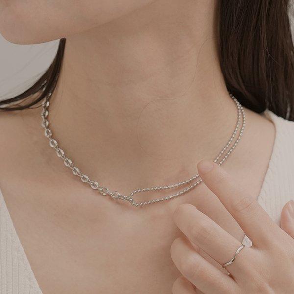 太めの小豆チェーンとボールチェーンを組み合わせたネックレス。