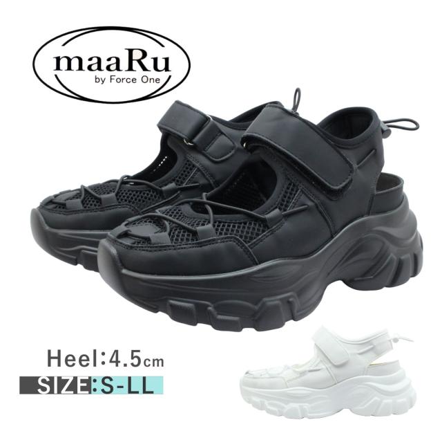 maaRu マアル レディース サンダル 1445 スポーツ スポーティ ストラップ シューズ プラットフォーム 歩きやすい 厚底 靴 黒 白 ブラック ホワイト