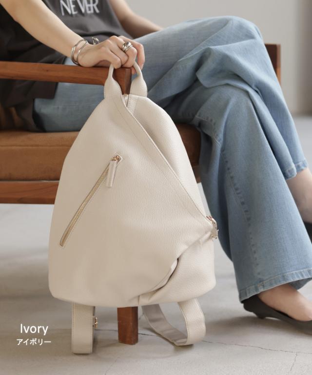 リュックなのにカジュアルすぎない、三角シルエットのモードなデザイン。