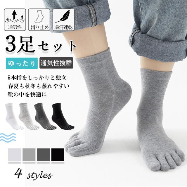 5本指ソックス メンズ 3足セット 抗菌 防臭 五本指 靴下 薄手 ハーフ スポーツ ビジネス 綿 黒 ホワイト グレー 靴下 ビジネス ソックス