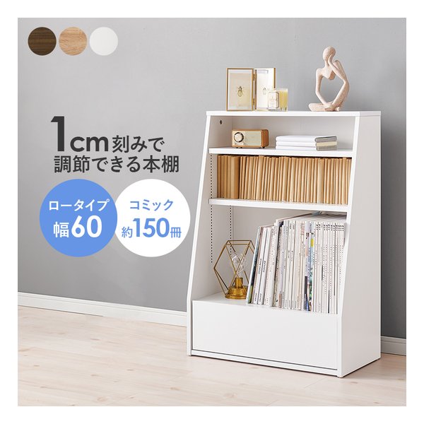 1cmピッチで棚板高さが調節できるシンプルなデザインの本棚。