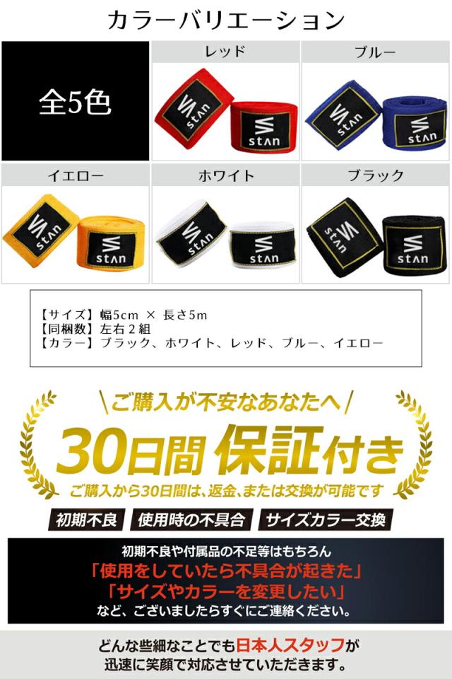stan ボクシング バンテージ キックボクシング 伸縮性 バンテージ 練習用 5cm × 5m MMA 格闘技 マジックテープ 2個セット 伸縮 インナーグローブ マジックテープ式 MMA 洗濯機 赤 青 白 黒 黄