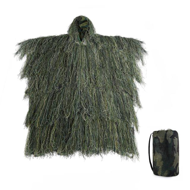[Tencen] ギリースーツ ポンチョ サバゲー メッシュ 迷彩 フード付き フリーサイズ カモフラージュ 戦闘服 偽装服