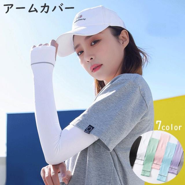 アームカバー ロング レディース メンズ 男女兼用 日焼け防止 虫除け 接触冷感 UV対策 通気性 伸縮性 腕 指穴 ライン ス