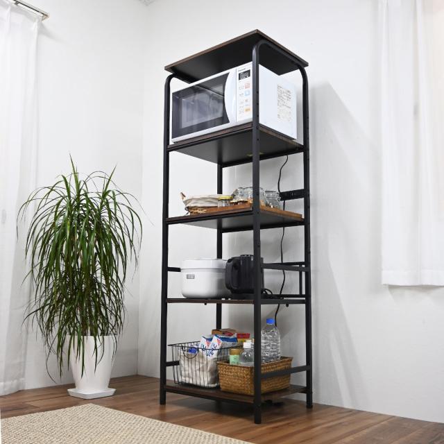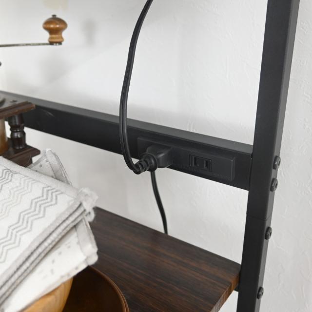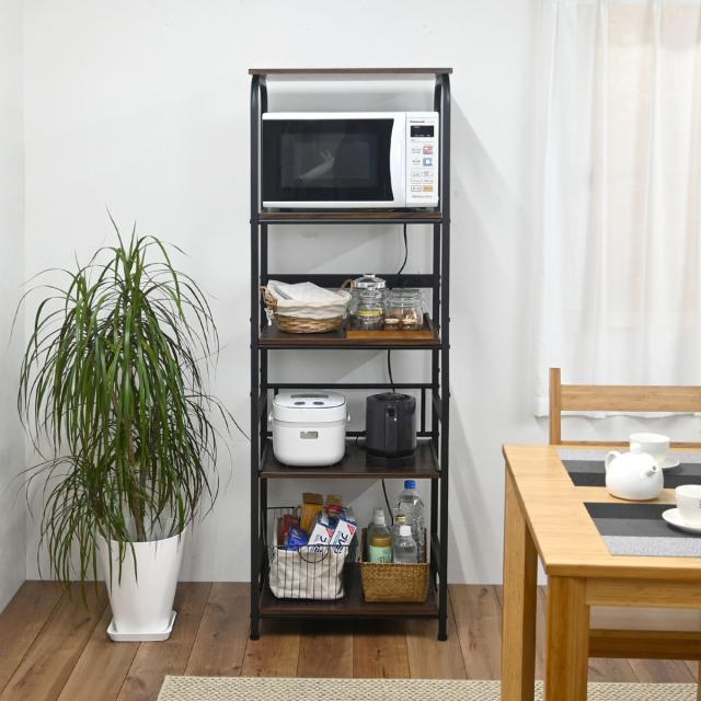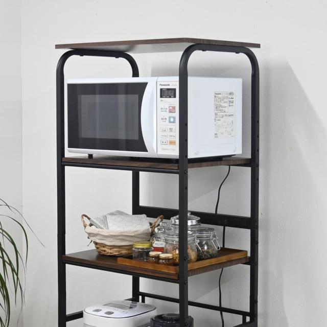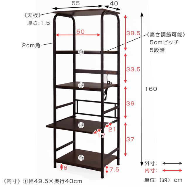レンジラック ハイタイプ 幅55cm×高さ160cm スチール 2口コンセント付 ( キッチンラック レンジ台 キッチンボード 収納 家電収納 台所収納 スライド棚 ラック 棚 シンプル コンセント付 )