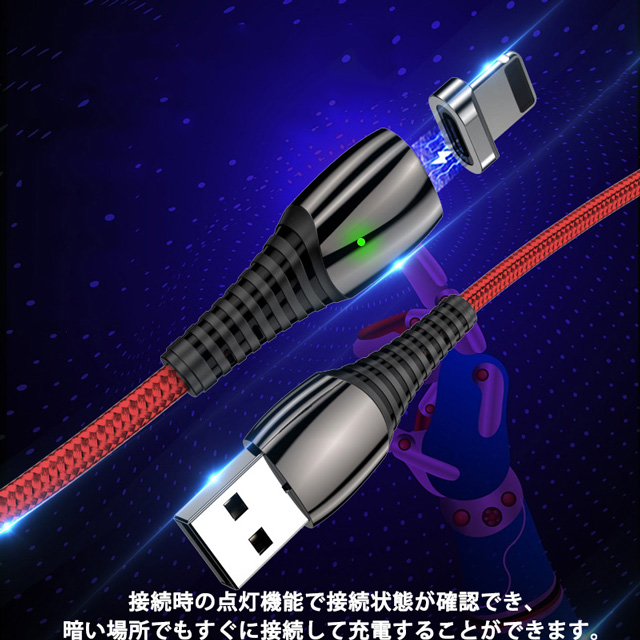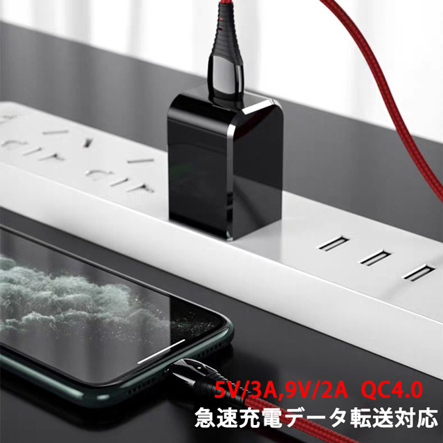 【1m】 3in1 マグネット 充電ケーブル 端子 セット 5V/3A 9V/2A QC4.0 急速充電 データ伝送 Lightning iPhone MicroUSB Type-C 充電 ケーブル Xperia Galaxy Android
