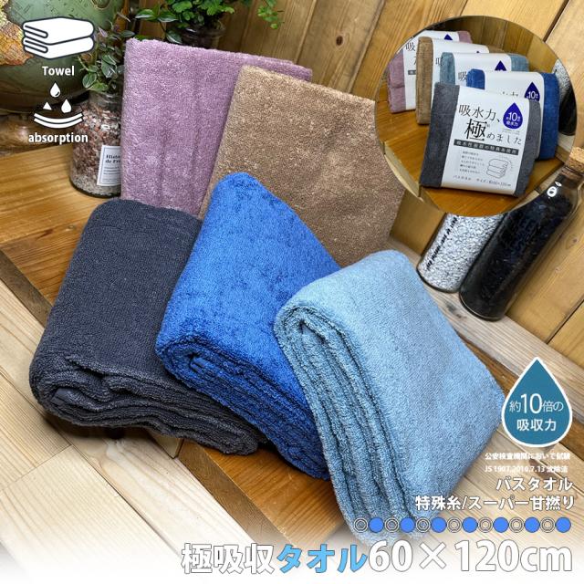 極吸水タオル バスタオル 約60×120cm 吸水性抜群 毛落ちしにくい タオル スーパー 甘撚り 綿 100% 厚手 バス用品 体拭きタオル 大判タオル カラータオル エステタオル サロンタオル 吸水タオル 日用品 介護 スポーツ ジム 入浴 温泉 風呂用品 ふわふわ 388040 配送区分60S