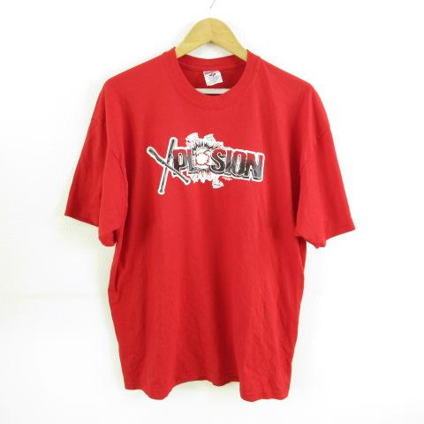 【中古】JERZEES カットソー Tシャツ 半袖 プリント 赤 XL *T253 メンズ