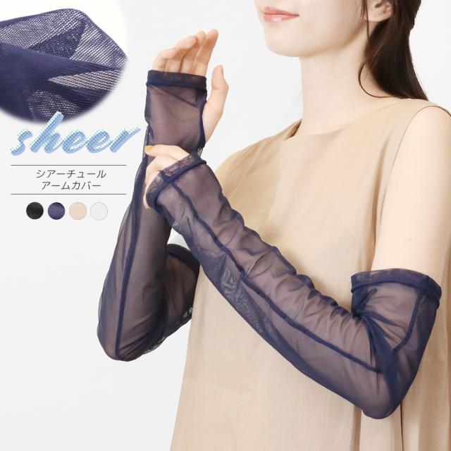 アームカバー チュール シアー シースルー ロング 約50cm 指穴付き サムホール 付け袖 シンプル *2-4t *y3-8t