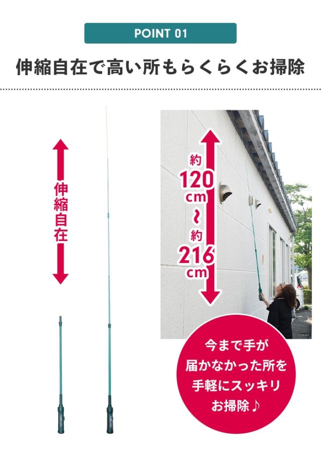 | いやーな、くもの巣を簡単お手軽に除去! 柄が伸びて、ぶるぶる高速回転、今まで手が届かなかった所を手軽にスッキリ掃除。 軒先や天井、庭木、カーポート、工場、倉庫など幅広い場所で大活躍! |