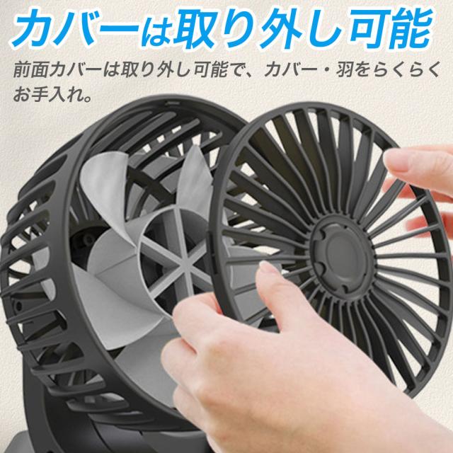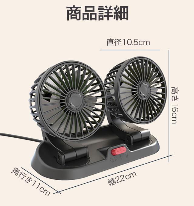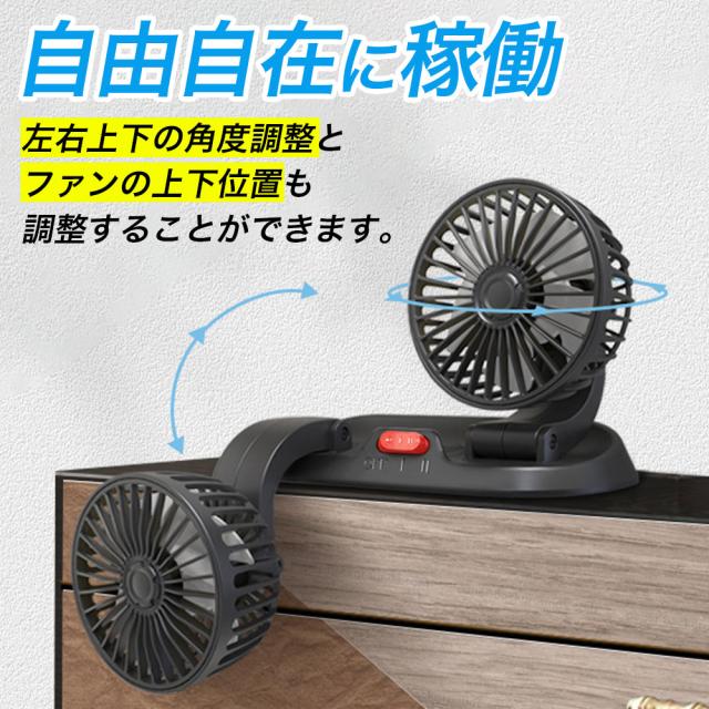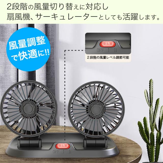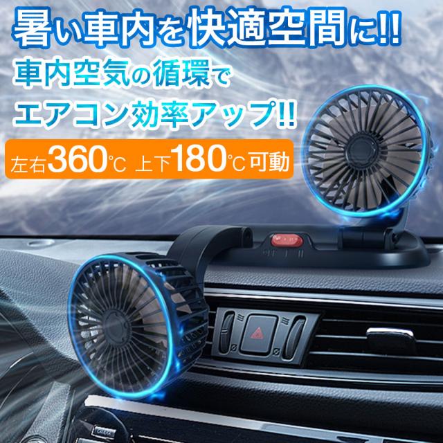 扇風機 車載 車用 USB 車 カーファン 小型扇風機 車内 サーキュレーター 黒 車内 車中泊 360 度 回転 360度 車載扇風機 ツインファン 角度調整可能 2段階風量調整 5枚羽根 シガーソケット対応