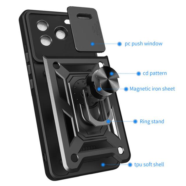 Redmi Note 13 Pro+ 5G 耐衝撃 ケース カバー スライド式カメラレンズカバー付き レンズ保護 一体型リング付き 2重構造 小米 シャオミ レッドミー ノート13 プロ プラス おすすめ おしゃれ シャオミー レドミー