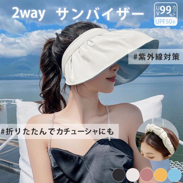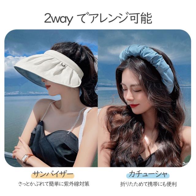 2wayサンバイザー つば広 シェル型 紫外線 カチューシャ 日焼け UPF50+ UVカット 遮光効果 体感クール 冷感 断熱効果 通気性 吸収速乾 クールダウン 髪型 形状記憶ワイヤー フ