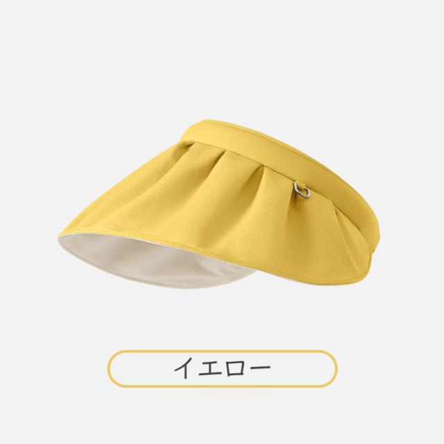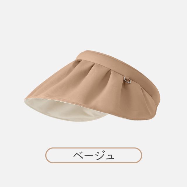 つば広の小顔効果抜群のシェル型サンバイザー!紫外線からお顔をしっかりガード!さらに、サンバイザーからカチューシャにも早変わりの両用使いが可能。日焼け防止、紫外線カット、UPF50+でUVカット率99%以上。防紫外線性能認証取得済み。高い遮光効果で体感クール髪型を崩さない形状記憶ワイヤー入りでしっかりフィット。自由な形状アレンジが可能。汗も安心の肌に優しい吸水バンド付き。