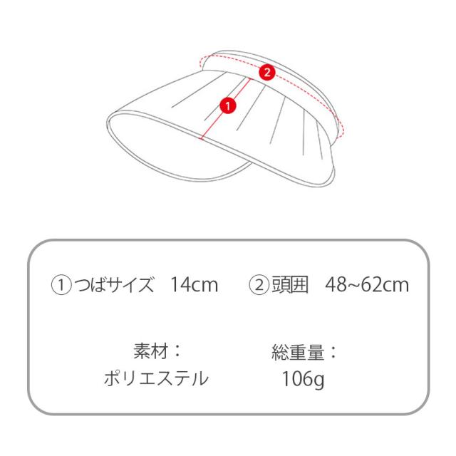 | 商品紹介 | つば広の小顔効果抜群のシェル型サンバイザー!紫外線からお顔をしっかりガード! さらに、サンバイザーからカチューシャにも早変わりの両用使いが可能。日焼け防止、紫外線カット、UPF50+でUVカット率99%以上。防紫外線性能認証取得済み。高い遮光効果で体感クール髪型を崩さない形状記憶ワイヤー入りでしっかりフィット。 自由な形状アレンジが可能。汗も安心の肌に優しい吸水バンド付き。 |