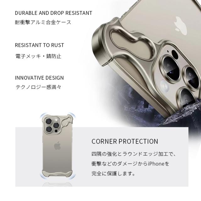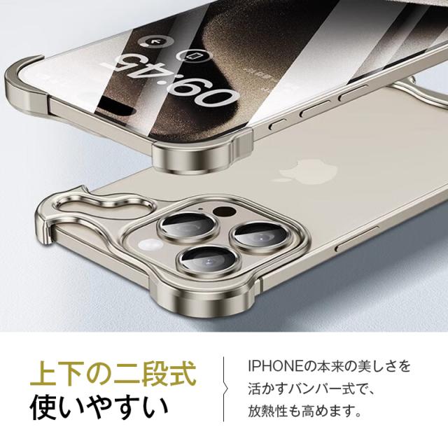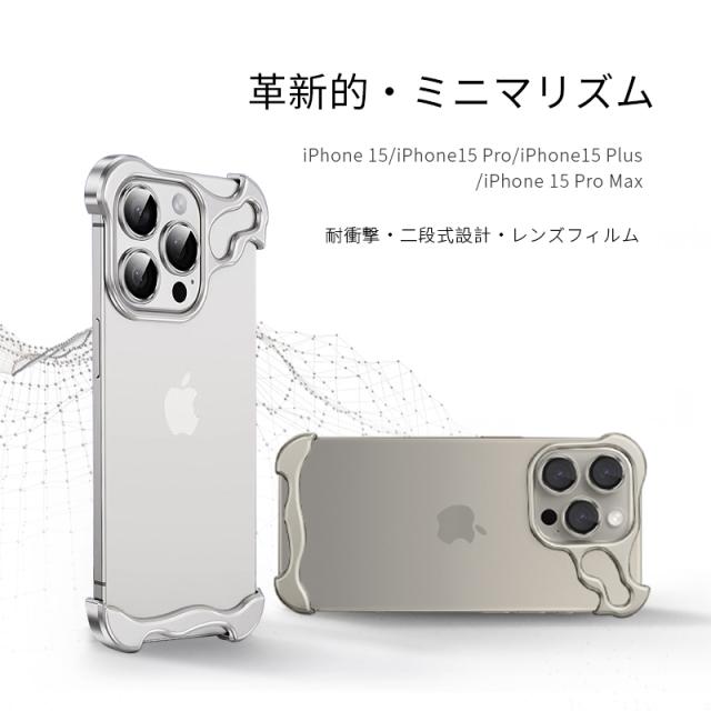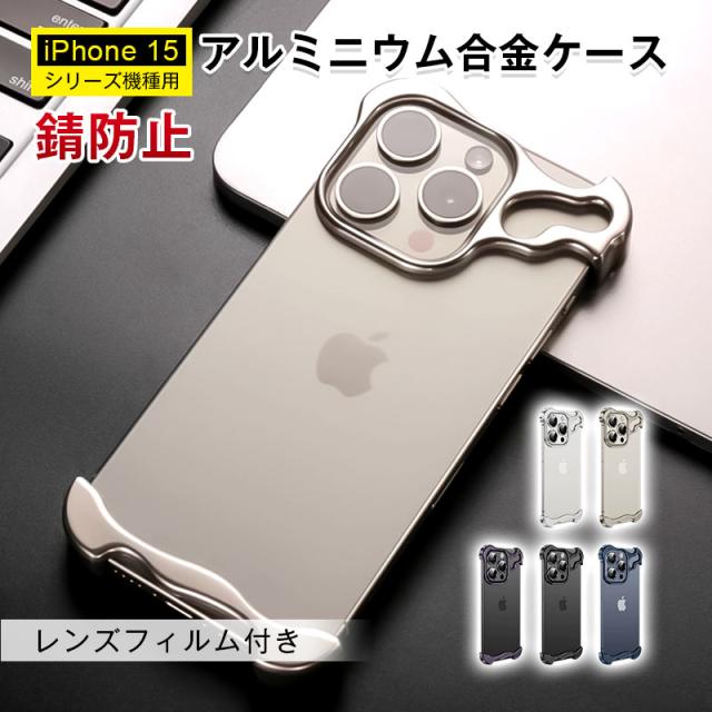 iPhoneケース アルミニウム合金ケース 二段式 iPhone15/15 Pro/15Plus/15ProMax 衝撃吸収 耐衝撃 レンズ保護フィルム 金属製