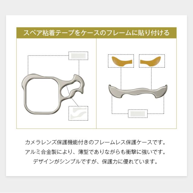 耐久性と耐衝撃性に優れたアルミニウム合金素材で、落下による衝撃をしっかり吸収できます。さらにiPhoneとの間に厚めの粘着テープが施されているので、保護シート代わりに一部の衝撃を吸収・分散してくれます。