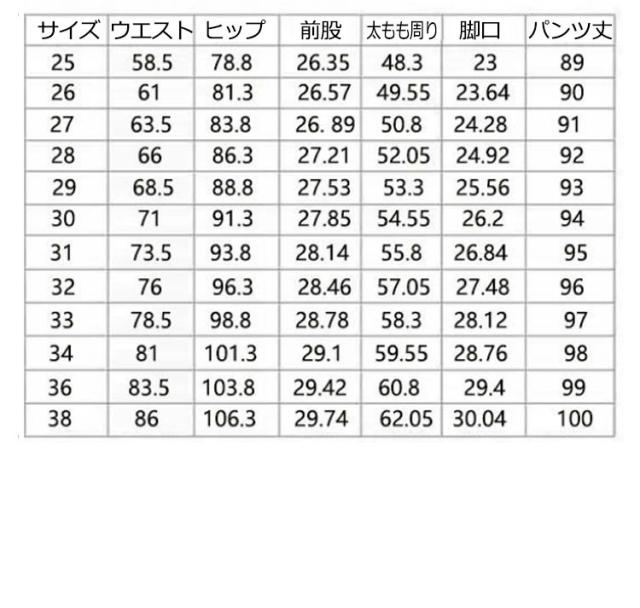 | サイズ | 25 26 27 28 29 30 31 32 33 34 36 38 |