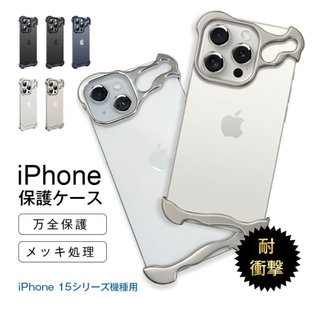 iPhone15/15 Pro/15Plus/15ProMax用 ケースカバー 衝撃吸収 レンズ保護フィルム アルミバンパー メッキ処理 ハードケース