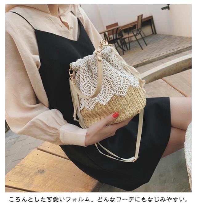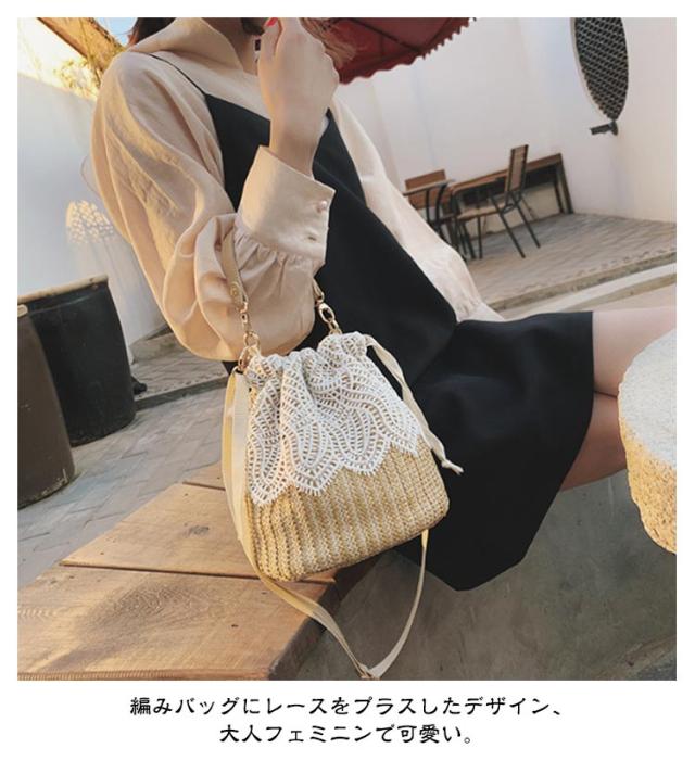 | 大人のキレイめかごバッグ。 編みバッグにレースをプラスしたデザイン、大人フェミニンで可愛い。 ころんとした可愛いフォルム、どんなコーデにもなじみやすい。 持っているだけでシーズンムードが高まります。 お祭り、花見、花火大会、ピクニック、ゾート旅行などに様々なシーンにピッタリ。 裏側布付き、小物入れのオープンポケットあります。 | |