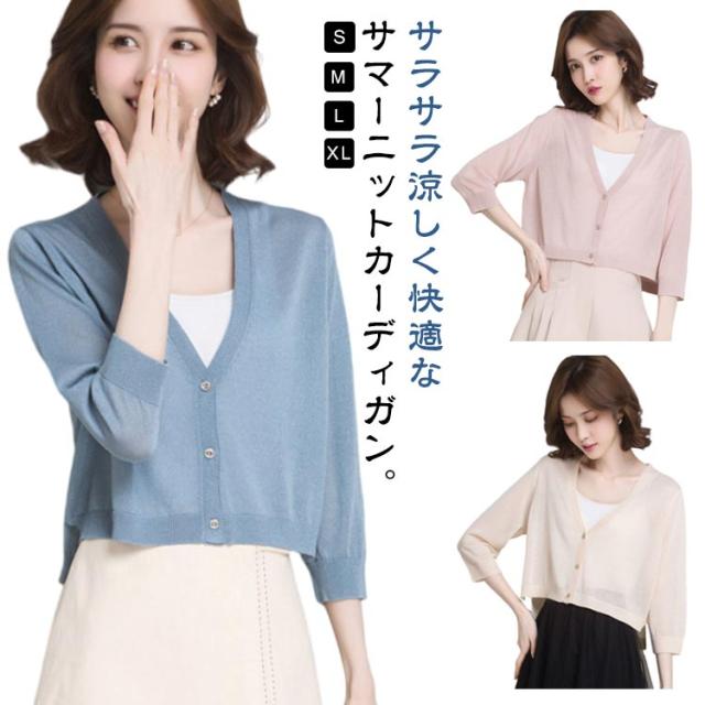 オフィス 7分袖 送料無料 ボレロ カーディガン 夏 薄手 ニットカーディガン 冷感 春 薄手 アイスシルク ニット サマーカーディガン トップス 羽織り Vネック サマー カーデ ボレロ 通勤 オフィス 冷房対策 薄い