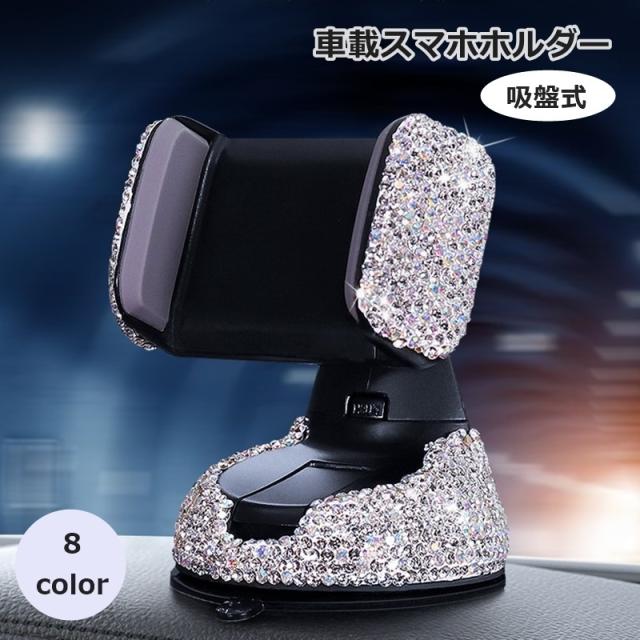車載スマホホルダー スマホスタンド 携帯ホルダー 車内 車用品 カーアクセサリー 吸盤式 角度調整 ラインストーン キラキラ 豪