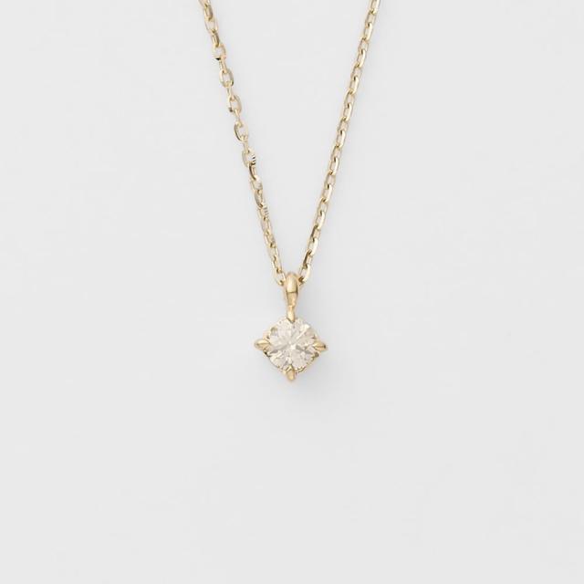 上下左右に留められた4点の爪が、スッキリと見える一粒ダイヤネックレス。丸みを抑えたスクエアのシルエットが、胸元で上品に輝きます。<価格改定のお知らせ> 2026年2月4日(水)より、素材の価格高騰に伴い価格改定を行います。商品タグに記載している価格につきまして、旧価格のものが混在している場合がございます。ご了承くださいますようお願い申し上げます。※天然石や天然素材を使用しているものは、サイズ・色味・風合いの違いや、若干の傷、内包物の有無などに個体差があります。予めご了承ください。