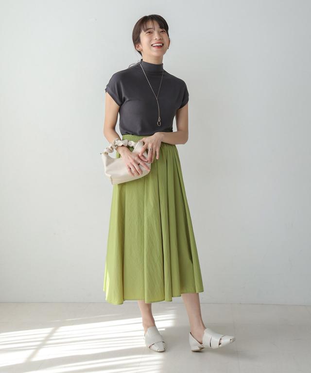 光沢感がありサラッと一枚でコーディネートのワンポイントとなるスカートです。ナイロン素材を使用しておりますので、乾きやすく耐久性にも優れております。