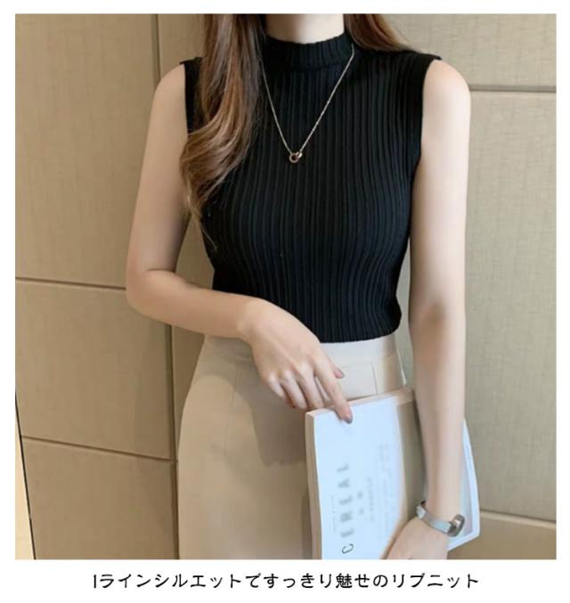 トップス ニット サマーニット オフィスカジュアル 1枚で決まる ノースリーブ 夏 フレンチスリーブ きれいめ フィット 大人 レディース オフィス 袖なし 上品 インナー ハイネック ノースリーブ カジュアル 春夏 韓国 韓国ファッション 20代 30代 40代