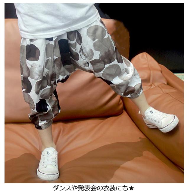 | 全5柄 90cm 〜 140cm 人気のサルエルパンツ♪ 男の子も女の子もOK! ダンスや発表会の衣装にも★ | |