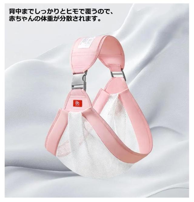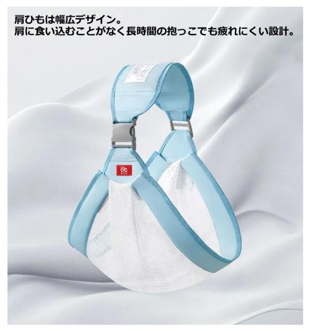 | バッグに入れておけば、いつでも取り出して抱っこできます。 赤ちゃんの体重をバランスよく分散してラクに支える快適性 優れた通気性とやわらかな肌ざわりのメッシュを使用し、親子の体に寄り添うようにフィット。 肩ひもは幅広デザイン。肩に食い込むことがなく長時間の抱っこでも疲れにくい設計。 背中までしっかりとヒモで覆うので、赤ちゃんの体重が分散されます。 | |
