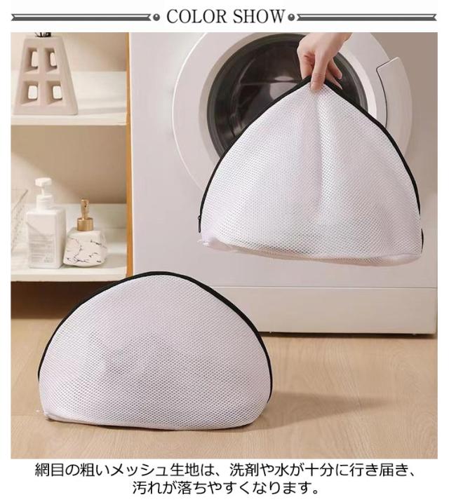 | 面倒な上履き洗いも、洗濯機で簡単丸洗いができます。 ? 網目の粗いメッシュ生地は、洗剤や水が十分に行き届き、汚れが落ちやすくなります。 ? 水はけ抜群のメッシュ生地なのでネット自体も乾きやすい。 ? もちろん靴だけではなく、スリッパやサンダル、帽子や下着など型崩れが心配な商品にもお使いいただけます。 | |