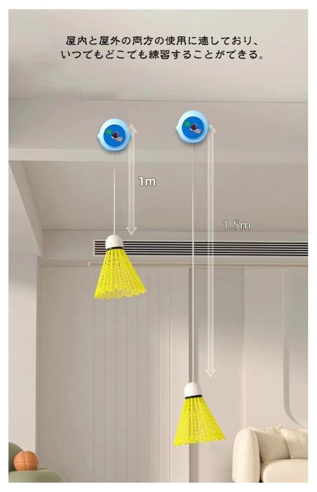 | 調節可能なコードの長さを備えたリバウンドトレーナーでトレーニングを強化する。 気軽にバドミントンを楽しめる。 ラケットは高品質プラスチック素材で作られ、安全で環境にやさしく子供たちが安全に遊ぶことができます。 シャトル2個付き。遊び始めは、羽根(シャトル)があっちこっちに飛んでいくもの★なくしても、壊しても安心★ 屋内と屋外の両方の使用に適しており、いつでもどこでも練習することができる。 | |