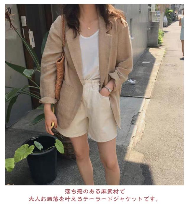 | 女性らしいエレガントな雰囲気を醸し出し、清楚なきちんとコーディネートにも最適。 着心地がバツグンで大人フェミニン感に見せるのも嬉しい◎ 毎日通勤からライトオケージョンまで対応できる、 落ち感のある麻素材で大人お洒落を叶えるテーラードジャケットです。 柔らかくて肌触り良く、通気性も良い麻素材を使用しているので、 キャミソールにもTシャツにも、コーディネートに取り入れやすい1枚です。 | |