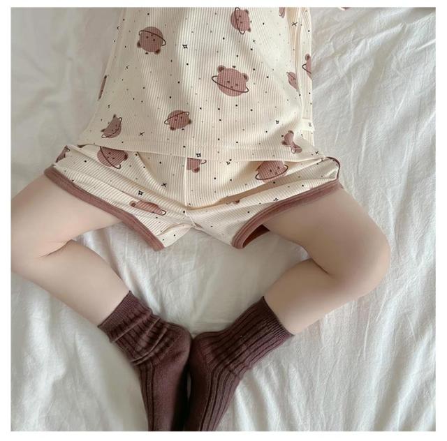 | 爽やか柄がキッズの愛らしさを引き立ててくれる。 肌に優しく、心地いい感触のレーヨン 柔らかな穿き心地で、軽やかさが魅力の上下セット。 お部屋でおしゃれを楽しむのはもちろん旅行やお出かけにもおすすめです。 | |
