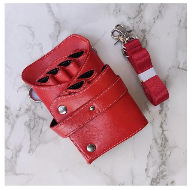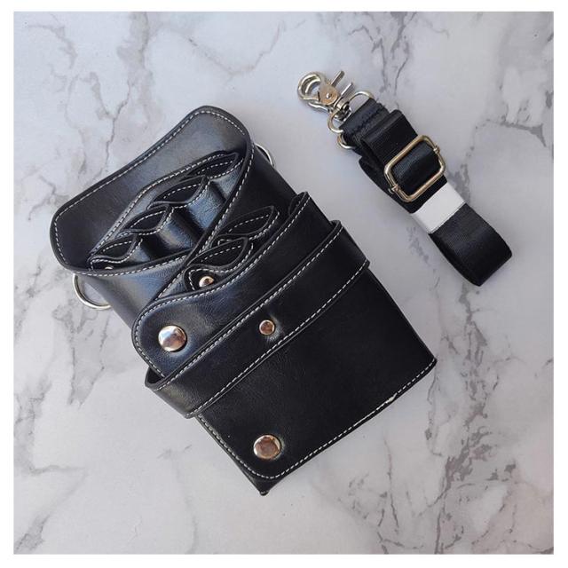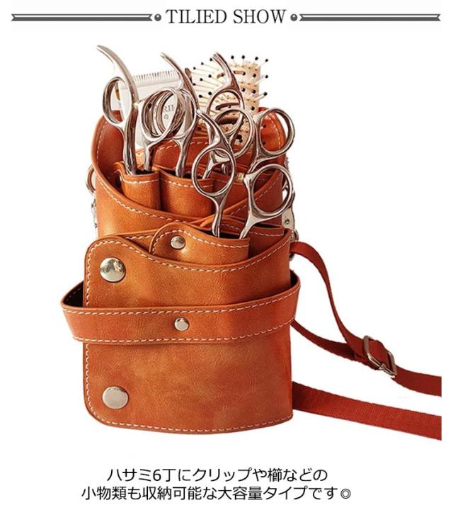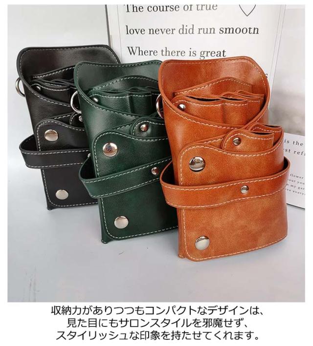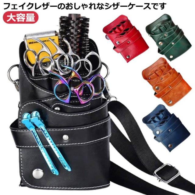 | フェイクレザーのおしゃれなシザーケースです。 ハサミ6丁にクリップや櫛などの小物類も収納可能な大容量タイプです◎ 収納力がありつつもコンパクトなデザインは、見た目にもサロンスタイルを邪魔せず、スタイリッシュな印象を持たせてくれます。 | |