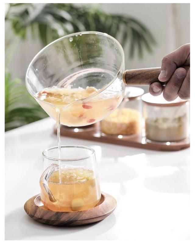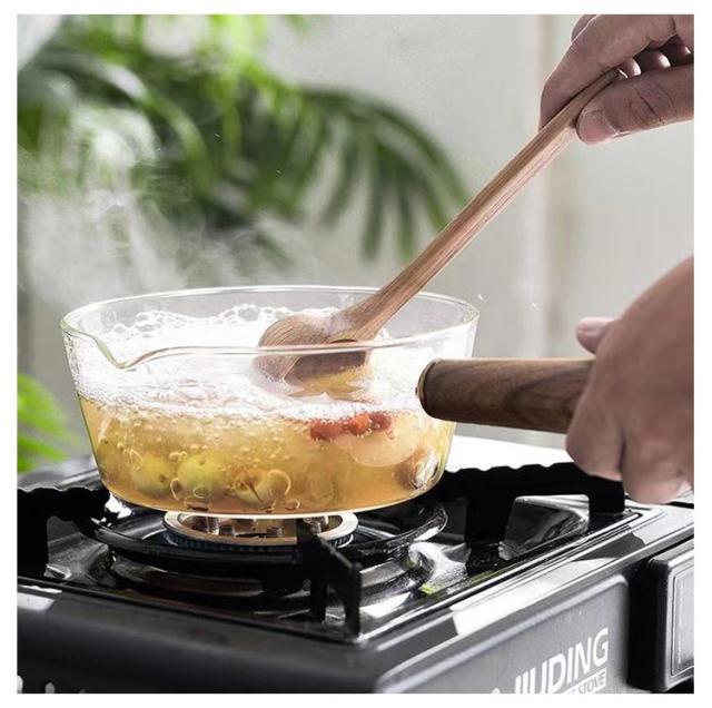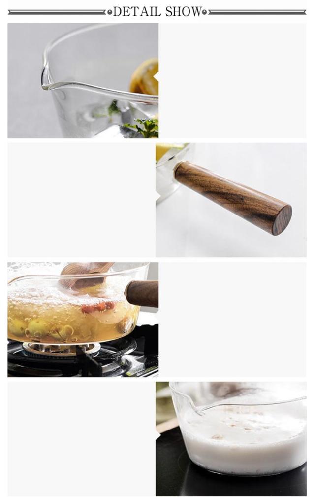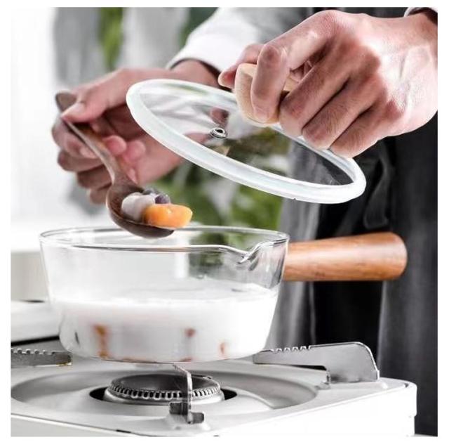 透明 蓋付き ガラスパン V字型注ぎ口 ミニ鍋 耐熱 ミルクパン ガラス鍋 小鍋 ガラスポット 耐熱ガラス 卓上鍋 蓋付き クリア 台所用品 透明 片手鍋 600ml キッチン ミニパン 小型 インスタ キッチン用品 調理器具 北欧風 多機能 木製ハンドル