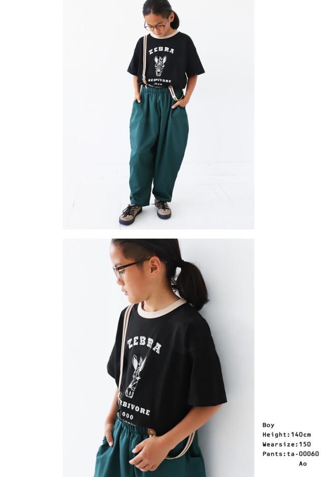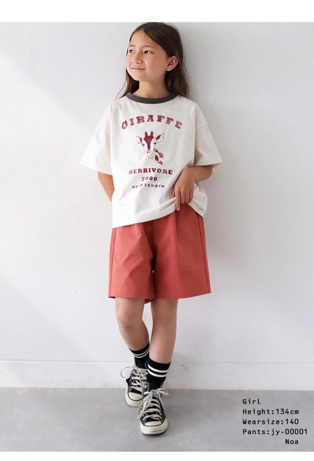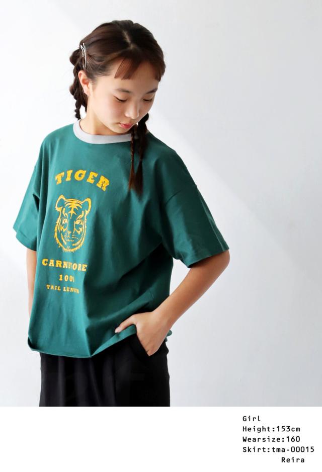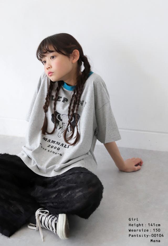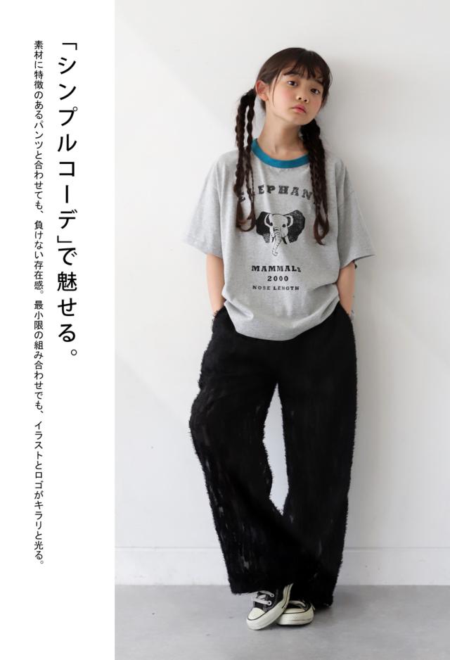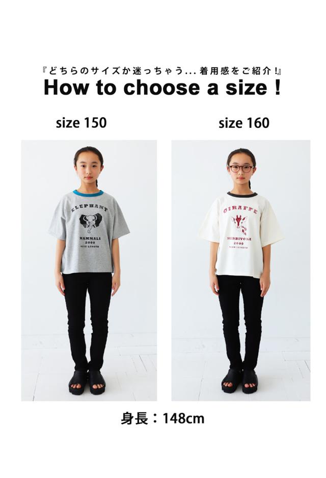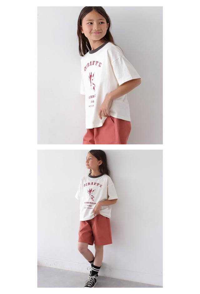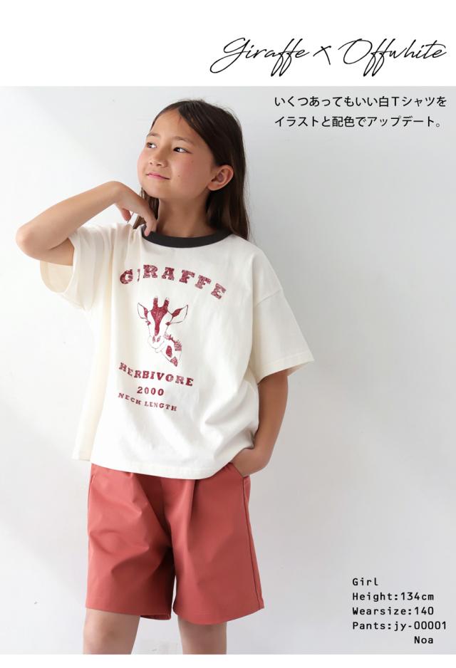 tma-00009j キッズ 子供服 男の子 女の子 ジュニア 高学年 中学生 中高生 綿100 カットソー 半袖 五分袖 アニマルプリント 配色 クルーネック 丸首 ロゴT 手描き 象 キリン