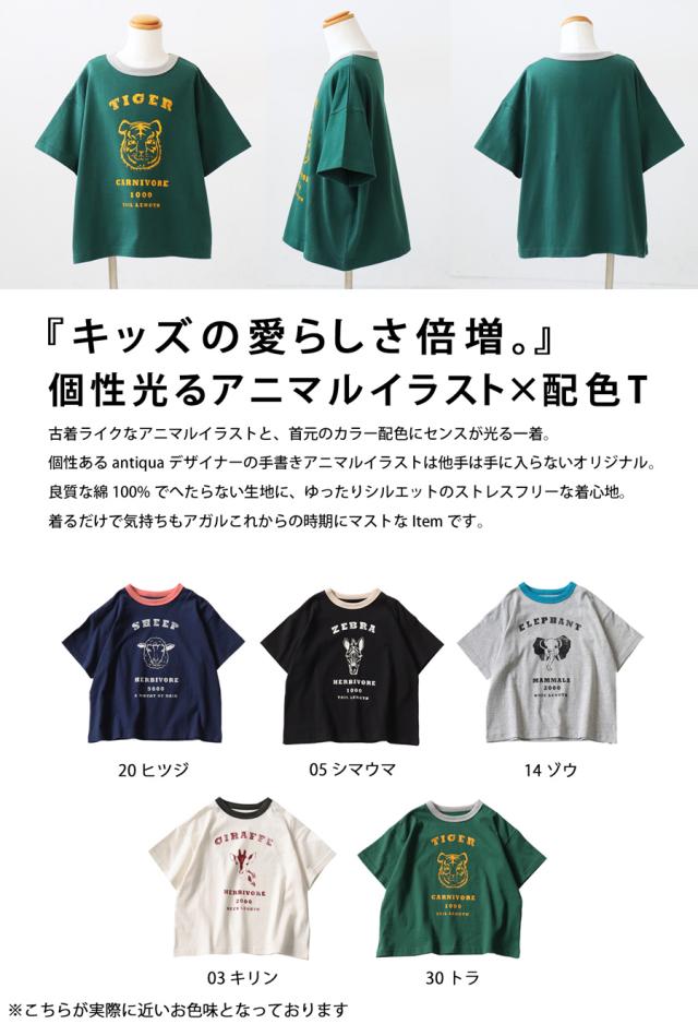 【検索ワード】アニマル カレッジロゴ Tシャツ トップス 子供服 ジュニア 綿100 カットソー 半袖 五分袖 アニマルプリント 配色 クルーネック 丸首 ロゴT 手描き 象 キリン トラ ヒツジ シマウマ オリジナル プリント ヴィンテージ感 レトロ 古着風 カレッジT リングT ゆったり シンプル 綿 コットン 丈夫 プルオーバー 親子 お揃い リンクコーデ 親子コーデ ファミリー おそろ オソロ 高学年 中学生 中高生 140cm 150cm 160cm 双子コーデ プレゼント お祝い 出産祝い 春 夏 秋 冬 オールシーズン キッズ 男の子 女の子 ガール ガールズ 通学 お出かけ お洒落 アンティカ antiqua おしゃれ 可愛い かっこいい
