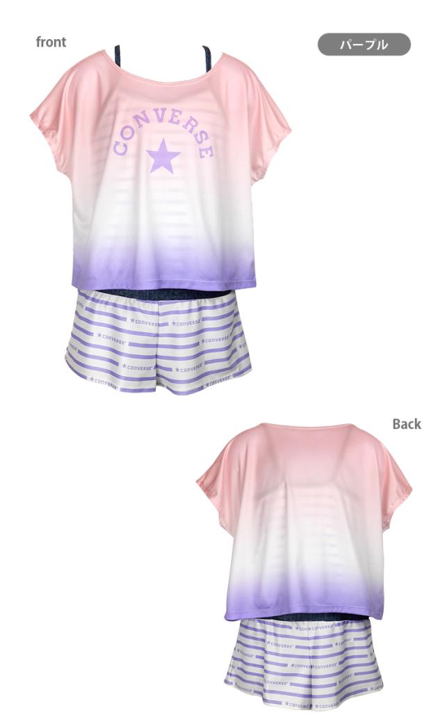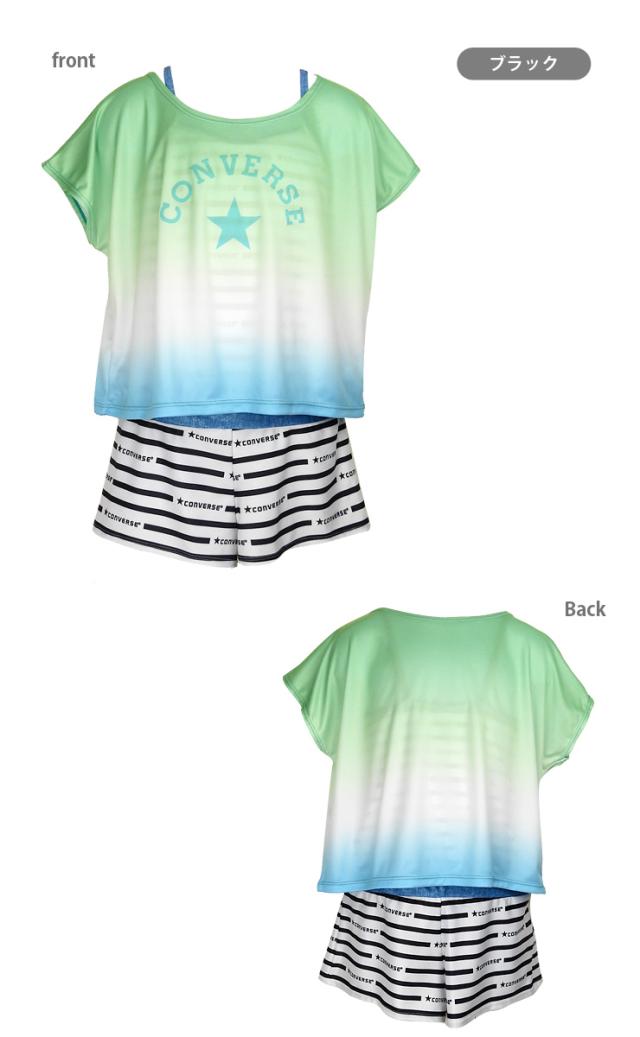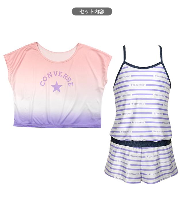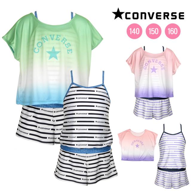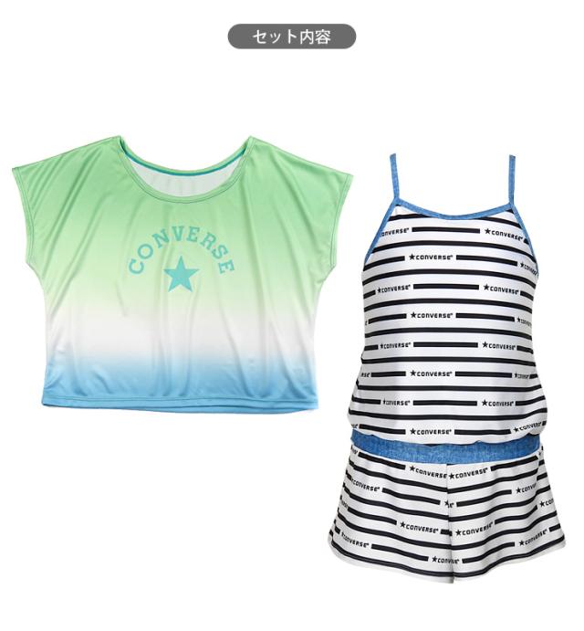 【メール便送料無料】CONVERSE キッズ・ジュニア ワンピース水着 2点セット 140 150 160 コンバース Tシャツ サロペット No.sw3502