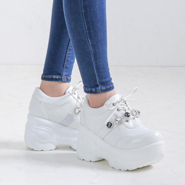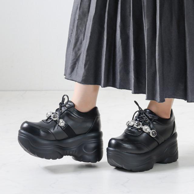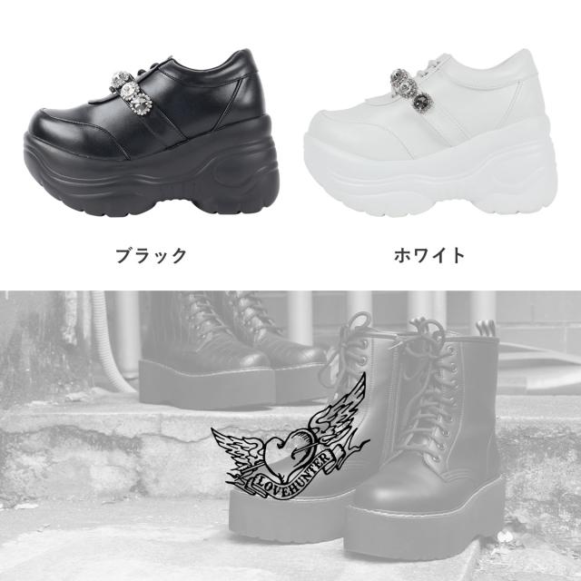 レディース ダッドスニーカー 厚底 ビジュー 9cmヒール 軽量 量産型 地雷系 クッション 歩きやすい No.1674 22.5-25cm 黒 白 LOVEHUNTER ラブハンター
