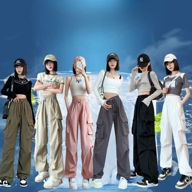 カーゴパンツ レディース 韓国ファッション ハイウエスト ストリート ジョガーパンツ スポーツ ダンス 春夏 黒