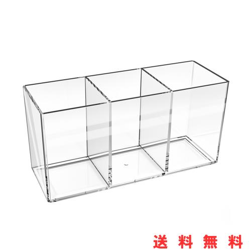 ペン立て 3格 仕切り 透明アクリル製 ペンスタンド 化粧品収納ボックス 卓上収納 文房具、メイクブラシなど小物入れ クリア (Style 1(3 C