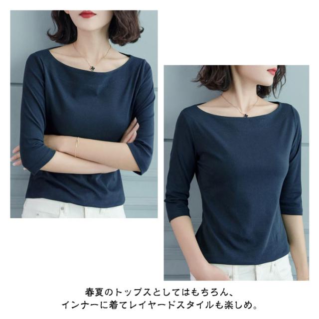 大きいサイズ 5分袖 ボートネック 着?せ インナー カットソー 5分袖tシャツ 重ね着 ボートネック 無地 シンプル カジュアル レディース 春 夏 M L XL 2XL