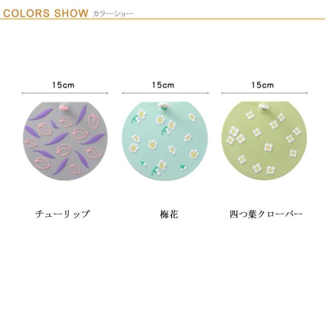 排水口カバー トイレ フィルター おしゃれ 排水口カバー キャッチ 髪の毛 ヘアキャッチャー キッチン シンク 丸型 洗面台 浴室 シリコン ゴミ受け 吸盤 15cm 梅花 チューリップ 四つ葉クローバー