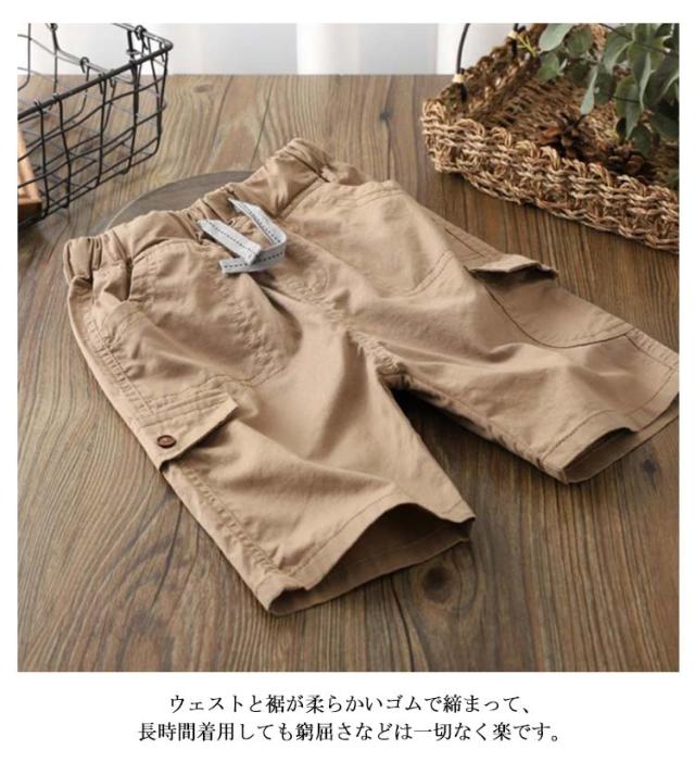 ジュニア ボトム ずぼん 大きめ ハーフパンツ ボトムス ショートパンツ 100 男の子 ゆったり ワイドパンツ ストレッチ 5分丈 無地 保育園 薄手 吸水速乾 キッズ チノパンパンツ 子供服 子ども服 半ズボン こども服 ワイドパンツ 110 120 130 140 150 160 170