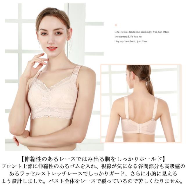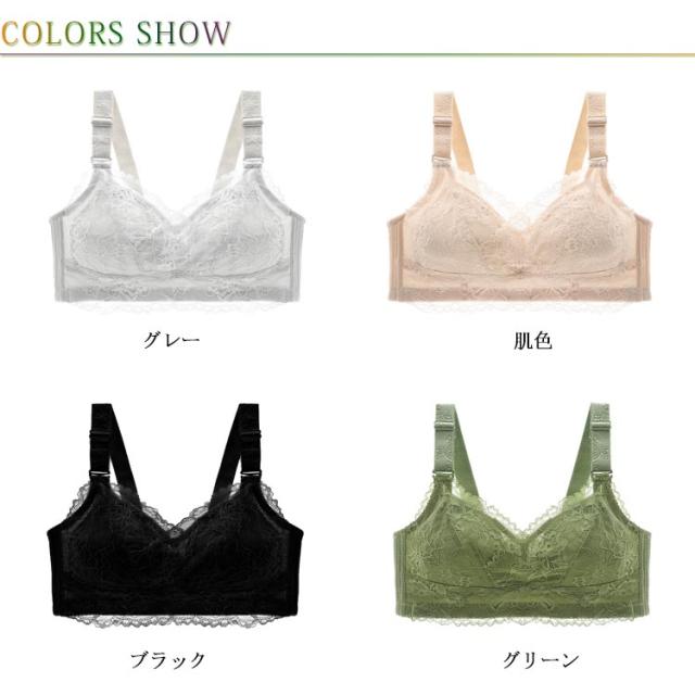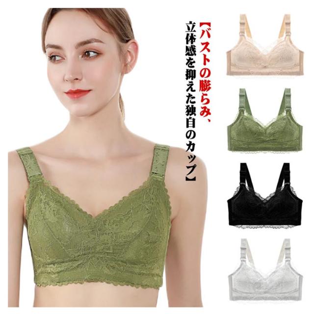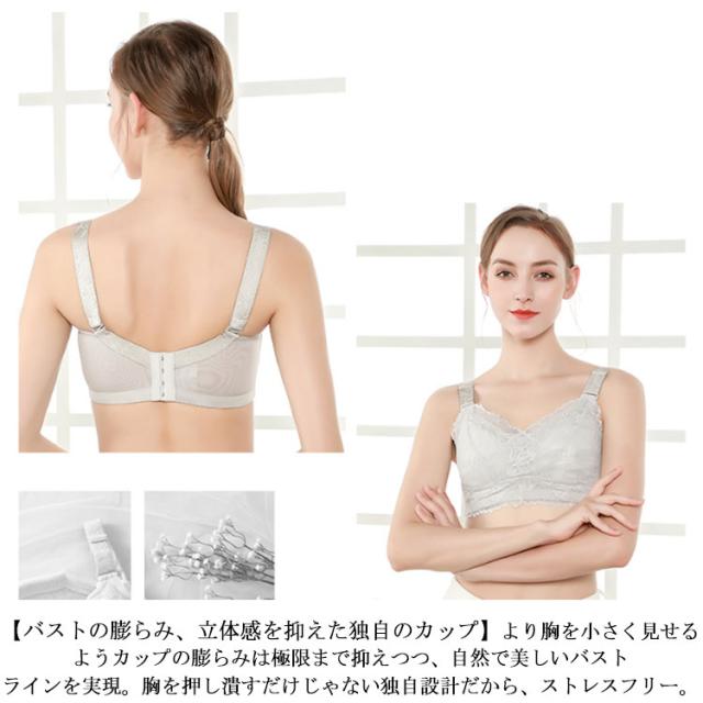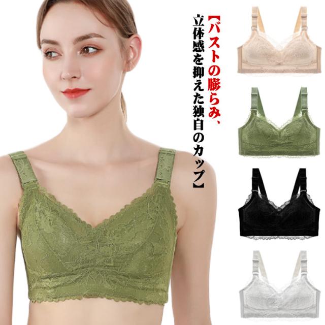 総レース 胸を小さく見せるブラジャー 胸が小さく見えるブラ レディース ブラジャー 花柄レース ノンワイヤーブラジャー 薄手 胸が小さく見えるブラ 育乳ブラジャー 脇高ブラ