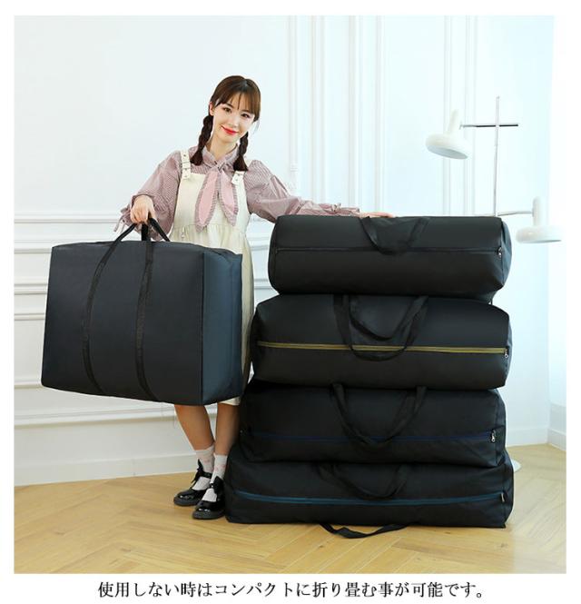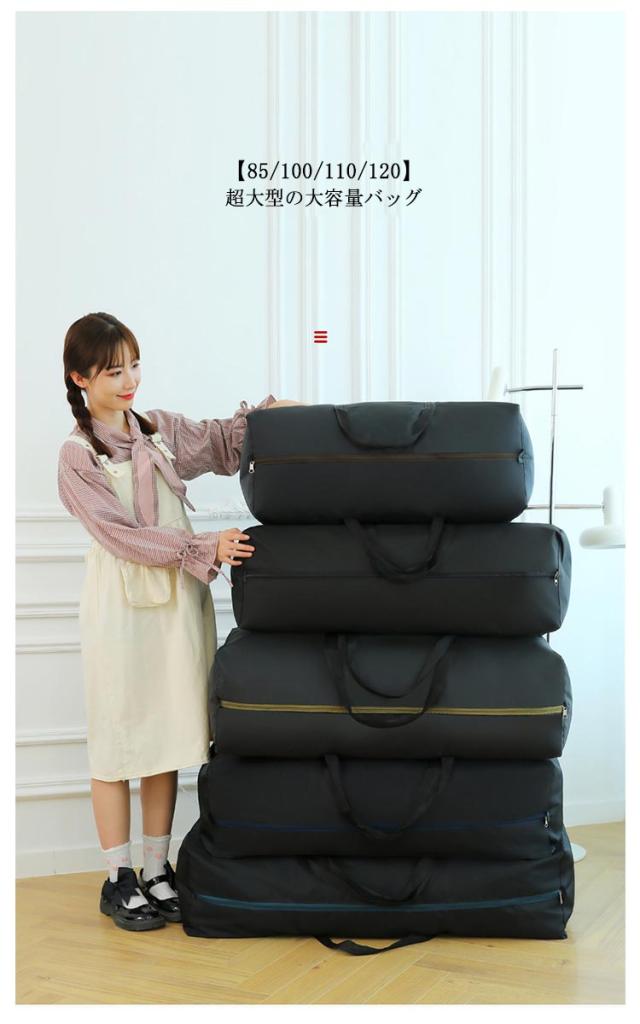 | 【85/100/110/120】 超大型の大容量バッグ 軽くて丈夫なオックスフォード素材。 防水性もあり、軽くて丈夫で耐荷重もあり。 ダブルファスナーなので、間口が大きく開いて荷物が入れやすく取り出しやすい。 使用しない時はコンパクトに折り畳む事が可能です。 布団や衣類を入れて押入れに置いておくのも、外出時に使用するのにも適しています。 | |